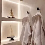 בזמן שכל חדר כולל כספת, פטיו ומרפסת, בחדרים ישנם תוספות כמו שירותים נפרדים ומקלחת או נוף של ים.